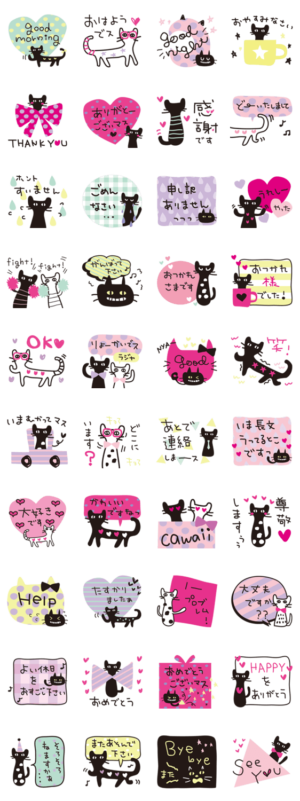 シンプルでオシャレなカワイイねこの日常会話スタンプ。敬語で年上.先輩.上司にもOK!シュールでおしゃれ♥大人かわいい黒ネコスタンプは【紅おれんじ】(beniorange)で^^紅おれんじ より発売