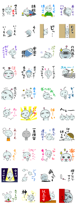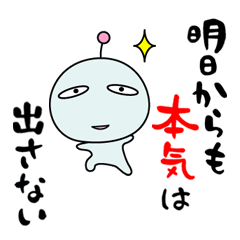 めんどうくさがりやの宇宙人、めんどく星人のスタンプ第3弾です!文字入りのゆる〜いスタンプです。awako より発売