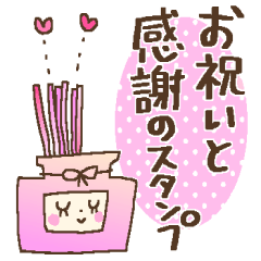 感謝の言葉とお祝いメッセージ、挨拶、あいづち、毎日便利な40個。シンプルで見やすい大きな文字と大人かわいいイラストで使いやすい優しいスタンプです。Konko3 より発売