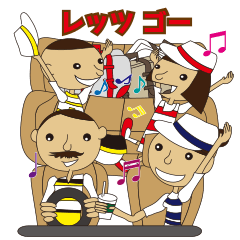 明るく賑やかなスタンプです。手が長いのが特徴ですね、きっと。