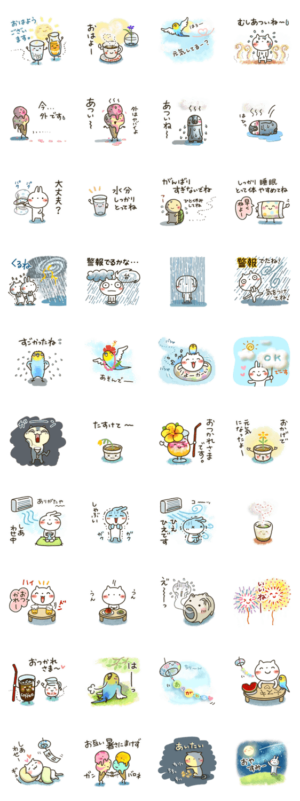 「やさしいスタンプ」シリーズの夏スタンプです。暑さに負けず夏トークを楽しんでね!Honobono より発売