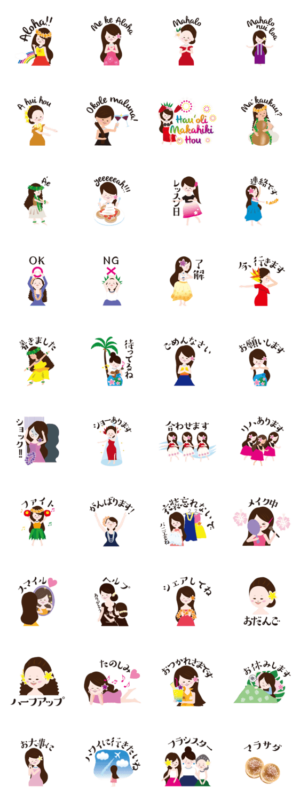 いつかハワイで踊りたい!そんなフラシスターの使えるスタンプです。フラダンス仲間の会話に便利です。momo より発売