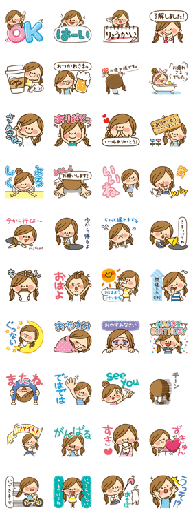 かわいい主婦の1日第6弾【よく使う言葉編】はかわいい女の子のよく使う言葉を集めたとっても使えるスタンプです。パパや家族、ママ友達との毎日の会話にどうぞ。アグリム より発売