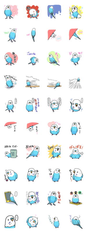 セキセイインコのスタンプです。鳥が好きな方、鳥が好きなあの人へ使って頂けたら嬉しいですkanmiQ より発売