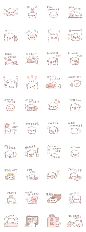 ポメラニアンもちシリーズ・しらたまのスタンプ第3弾。ゆるっとした敬語多めのバージョンです。