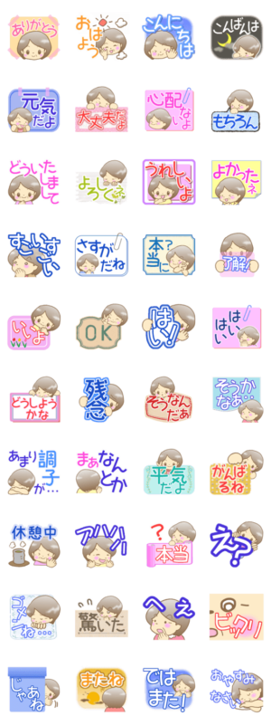 おばあちゃんが、優しくお話しやお返事をします。おばあちゃんやお母さんに使っていただければと思います。プレゼントとしても、ぜひ。【かたこスタンプ】