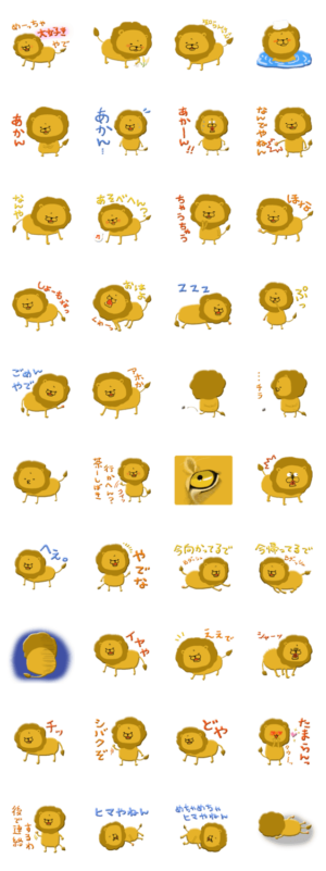 日常会話で使いやすい関西弁スタンプです。ネコのようですがらいおんです!BTK より発売