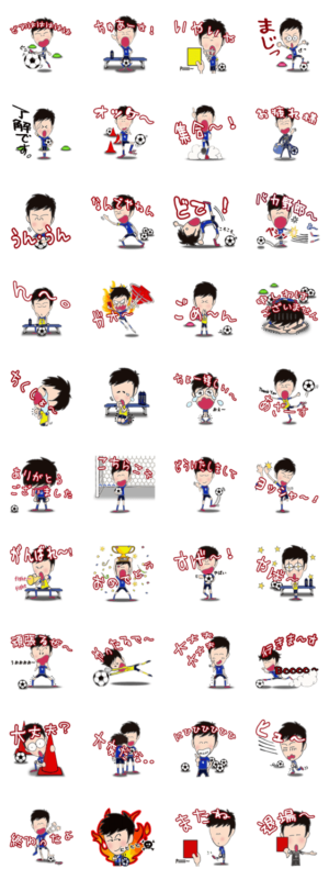 サッカー大好きな男の子が、「感謝」したり、「突っ込んだり」「ズッコケ」たりできるスタンプですカメラのおじさん より発売