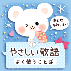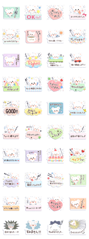 大人かわいい、ナチュラル柄のふきだしタイプ。主婦、学生からママ友や先輩へ、ゆるっと使いやす白いくまの敬語です♪ひらいうたの より発売