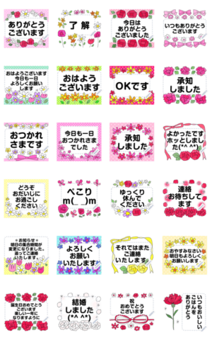 感謝の気持ち、誕生日や結婚、出産、母の日などさまざまなお祝いのメッセージや日常の会話など、自由に言葉を入力できる便利なスタンプ。大人かわいいフレームです。 現在この商品は一部のスマートフォン版LINE 10.3.0以上のトークルームでのみ使用できます。動作環境の最新情報はヘルプをご確認ください。Konko3 より発売