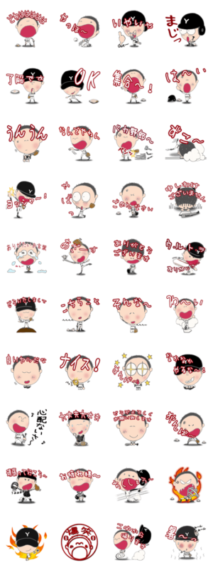野球大好きな男の子、甲子園や野球をこよなく愛してい方男の子が笑ったり、悔しがったりほんわかするスタンプですカメラのおじさん より発売