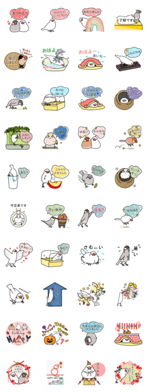 文鳥の日常的に使えるスタンプです。けろ より発売