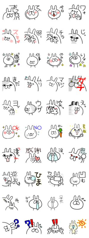 二文字だけでトークが出来る!シンプルスタンプ。可愛い?シュール?ゆるい?言葉少な目シンプルなウサギです。ホワイトデーにいかが?pegのスタンプ第32弾peg より発売