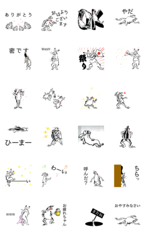 動きます。時に激しく。カエル・うさぎ・ネコ・サル、鳥獣達のシュールで愉快な日常トークスタンプ。鳥獣戯画は動くよどこまでも。なつめ より発売