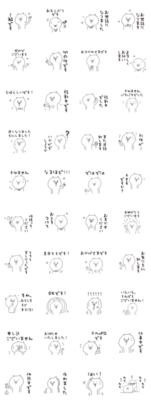 仕事中に使いやすい白猫のスタンプです!多忙の時や上司や職場の同僚、お仕事先の方にも?HIFUMIYO.LLC より発売