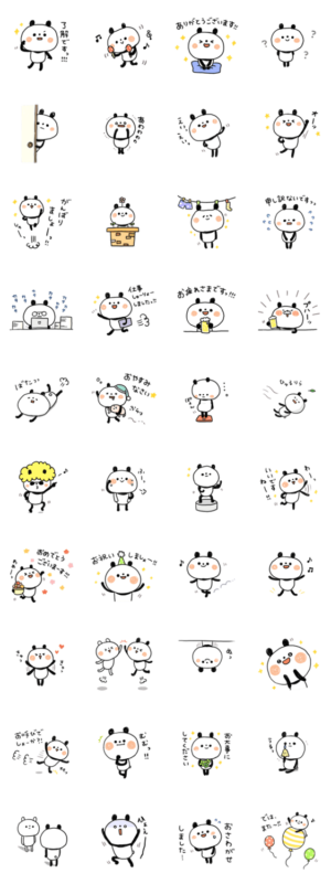 硬すぎない敬語もちょこっと詰まった、誰でも使いやすいゆるパンダのスタンプです。kazunoco より発売