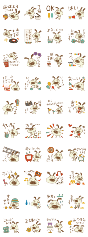 犬のバウピー。レトロ風。「OK」「了解」から「すみません」まで。昔懐かしいレトロ調のスタンプがいっぱい。楽しい気分で、あなたの気持ちを届けよう。Mami / エストループ より発売
