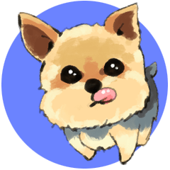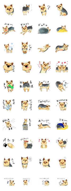 元気で気ままなヨークシャーテリアの日常スタンプ。年中サマーカット、実は犬歯が一本しかないおじいちゃん犬です。ちゃる より発売
