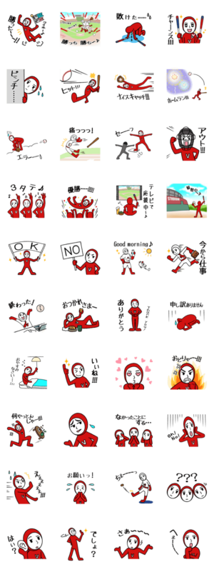 野球大好き♪広島生まれの赤いタイツマン スタンプ画像一覧