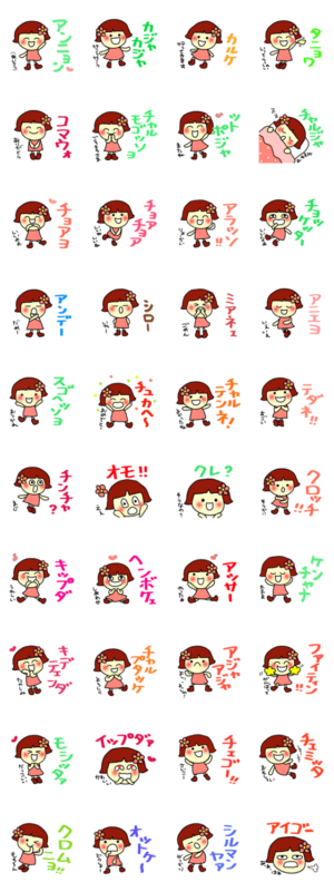韓流ドラマで日常使われるため口っぽい韓国語をカタカナ読みにしたスタンプ。友達や韓流ファンはもちろん日本語の訳付きなので韓国語のわからない親しい人にも使えます。