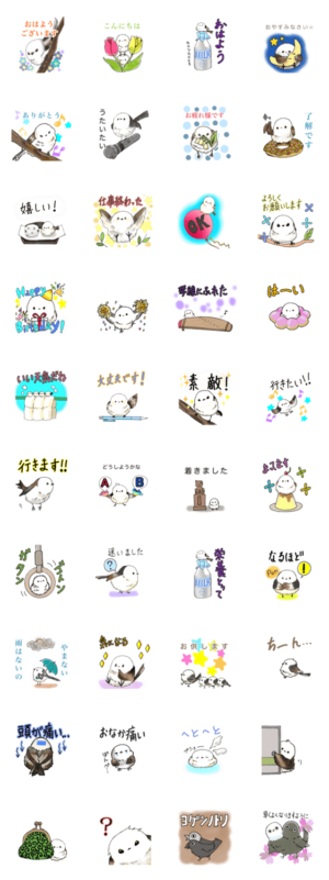 毎日使えるシマエナガちゃんのほっこりスタンプです。ゲストにヨゲンノトリさんも。eimi より発売
