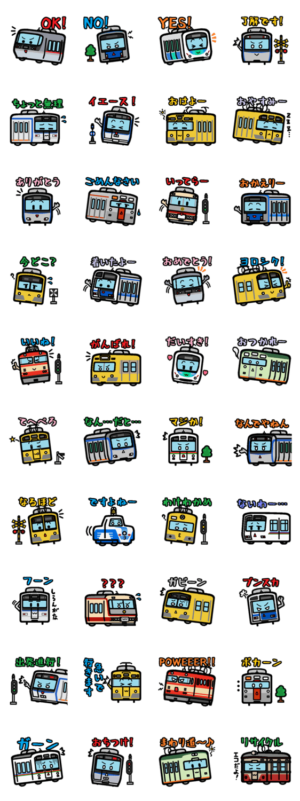デフォルメした可愛い電車のスタンプです。溝犬堂 より発売