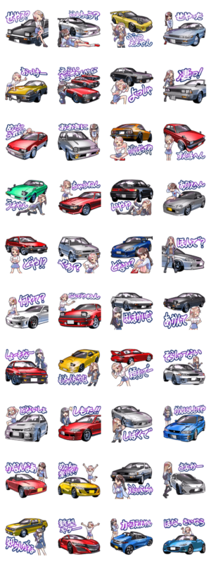 車(1990年代)と合わせると使い易い80個の日常会話のスポーツカーのスタンプになります。他にもバイクやトラックも別途ございます。宜しくお願いします。