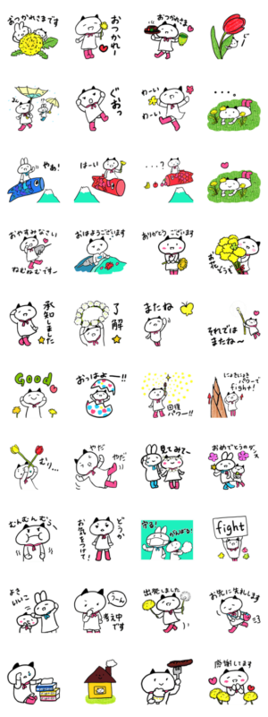 やっと来ました春☆ねことうさぎと一緒に、楽しく毎日るんるんで使えます。たんぽぽ、チューリップ、シロツメクサ、手洗い、マスク、こいのぼり、雨の日など。