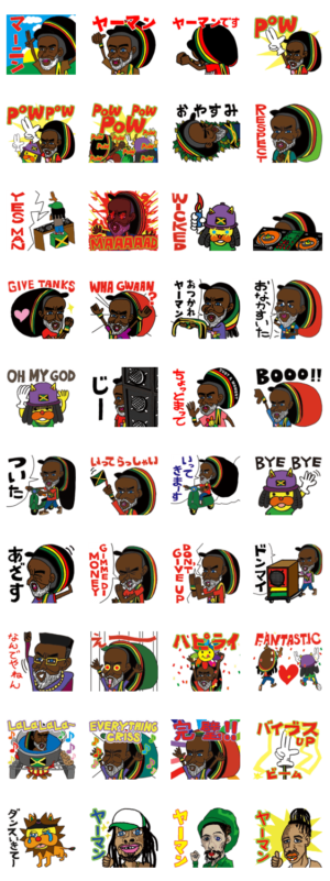 ジャマイカみたいな島に住むレゲエ好きなおじさんのヤーマンな伝説スタンプです。ブドウちゃん より発売