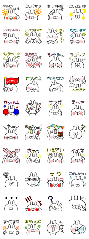男女兼用!敬語入り。可愛い?ゆるい?カラフルなスタンプです。顔文字・2文字・3文字・4文字うさぎも販売中です。ホワイトデーにもpegのスタンプ第41弾