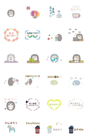 はりねずみ、ダーラナホース、ミモザやバラのお花などの北欧風スタンプです。コロナの影響でおうちにいる時間も楽しくやりとりできますように。1/2サイズVer.もあります。タナカ15 より発売
