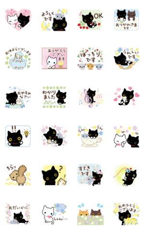 靴下にゃんこの敬語スタンプが登場!大人っぽいデザインだから、友達はもちろん仕事仲間にも使いやすいよ♪イマジニア(株)/サンエックス(株) より発売