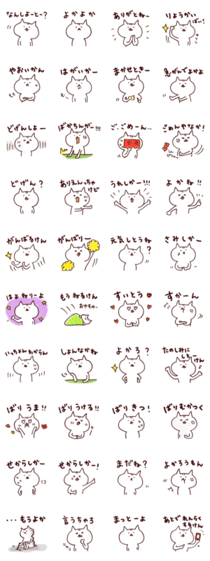 博多弁を話す猫のスタンプです。普段よく使う言葉を集めました。佐賀・長崎・熊本・大分・宮崎・鹿児島でも使われている九州共通の方言も入っています☆