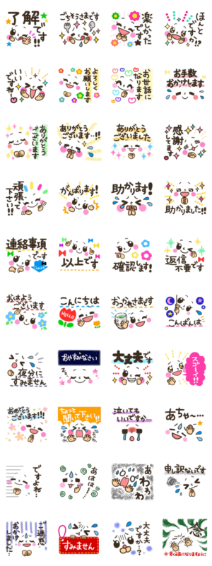 可愛い顔文字スタンプシリーズ第4弾は、よく使う敬語編!会話のワンクッションにピッタリです。【可愛い顔文字スタンプ】シリーズとあわせて統一しやすいです★