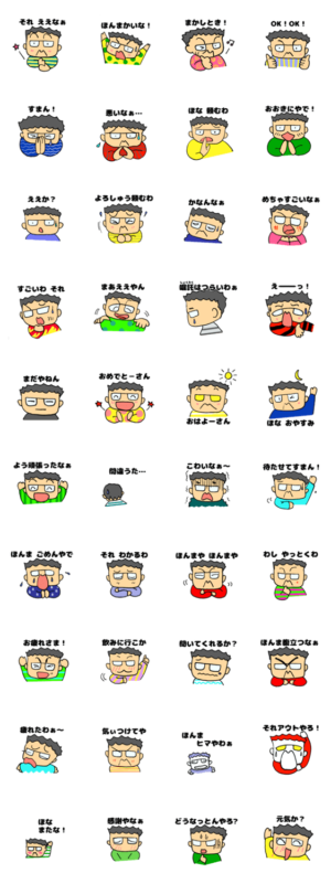 還暦過ぎても会社で頑張る嘱託おじさん。 今日も元気に関西弁で日常生活を送るサラリーマンの応援スタンプ。くーた より発売