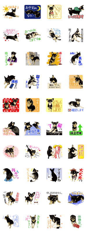 チワワのココ&ルイ第4弾は日常や会社などで【よく使う敬語】を集めたスタンプです。お友達や家族、上司にも使いやすいフレーズです。