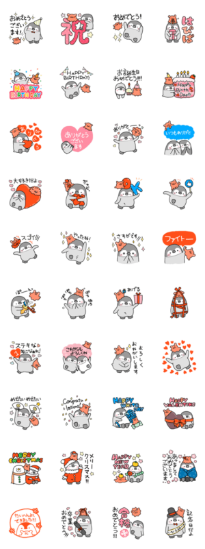 みんなにおめでとうと伝えたいコウテイペンギンとメンダコ。誕生日、ありがとう、大好き、バレンタイン、クリスマス、お正月、記念日など。一年中使えるスタンプです。猫井ナツミ より発売
