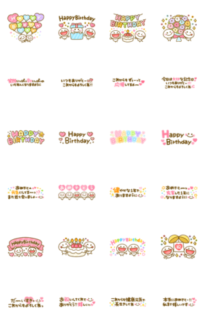 省スペース仕様のHAPPYBIRTHDAYの文字やお祝いの言葉などを組み合わせて何通りものオリジナルお祝いメッセージを作れます♡ゆるかわ棒人間もいっぱい♡