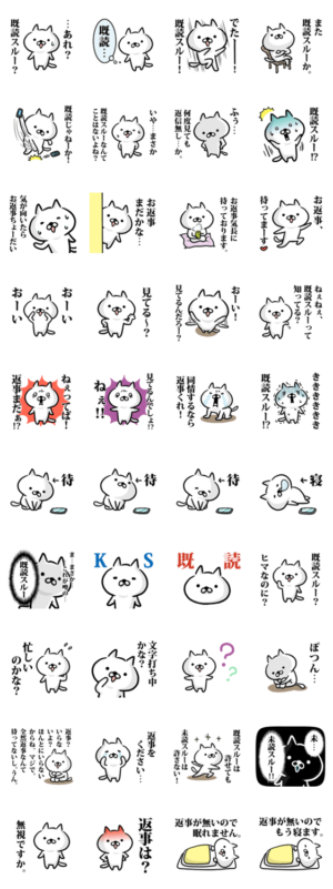 既読無視(KS)に敏感な猫のスタンプ。返事を待つ間に、このスタンプを送ってみましょう。かわいいねこが返事を求めてくれます。pictureS より発売