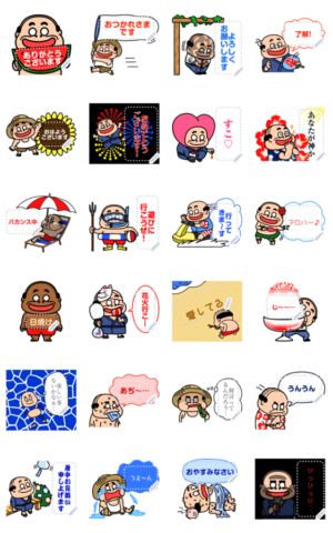 メッセージスタンプ。昭和のおじさんの夏バージョンです!夏らしいイラストを描いてみました!※お好きなセリフを何度でも入力できます(最大100文字)