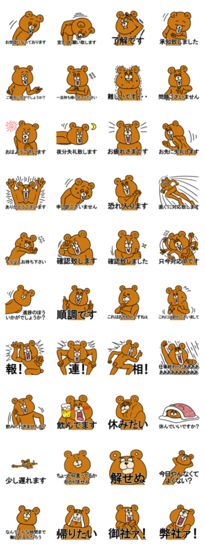 ちょっと煽り気味の、かわいいかわいいくまのスタンプです。社会人らしい敬語を使えるようになりました。社会人のあなたにも、学生のあなたにもおすすめです。