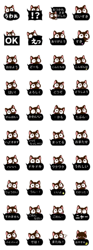 小さい黒猫スタンプ【黒い吹き出し編】 スタンプに書いてある文字一覧