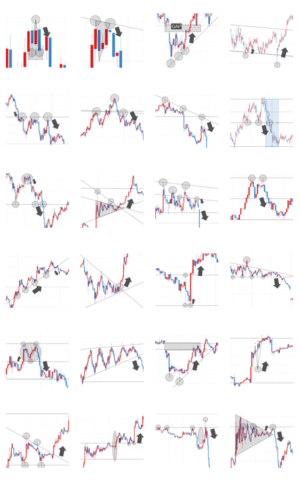 上げ下げの予想に使いやすい、絵文字タイプのキャンドルチャート!重要なパターンを知っておこう。為替、株、指数、債権、商品、先物やデリバティブにご利用ください。