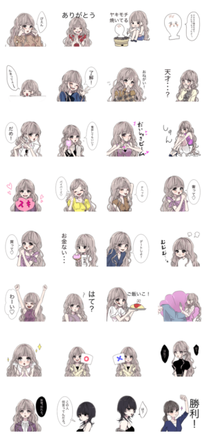 ふわゆるウェービーヘアーが女の子っぽくて憧れてしまいます。女子力高いスタンプです。