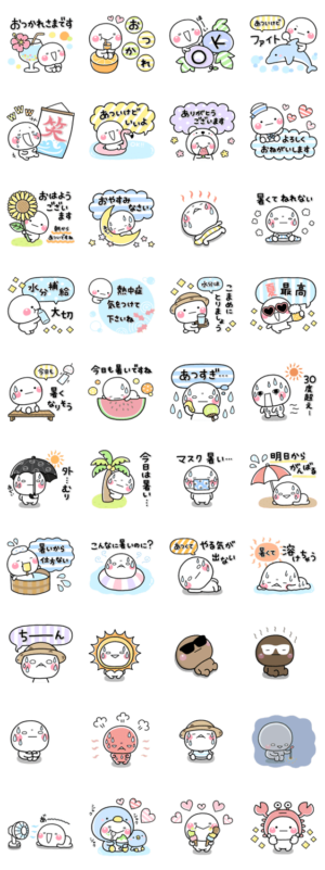 夏に使える内容を揃えたしろまるのスタンプです。【作:いしいともこ】