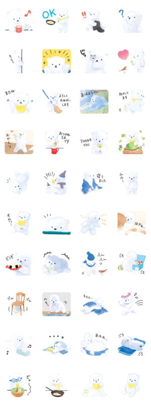 リトルコチカの絵本「しろくまのいる生活」シリーズのスタンプ第一弾です♪絵本の中のしろくまくんがスタンプになりました。