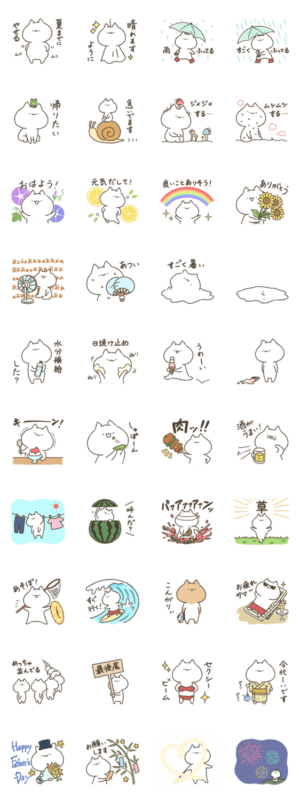 もちゃ氏が描くねこのスタンプ、夏バージョンです。もちゃ より発売