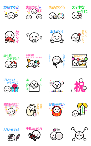 ほわいとさんのお祝いスタンプです。いろんな記念日に使えます。誕生日/結婚/出産/入学/卒業/合格/ありがとう/おめでとう