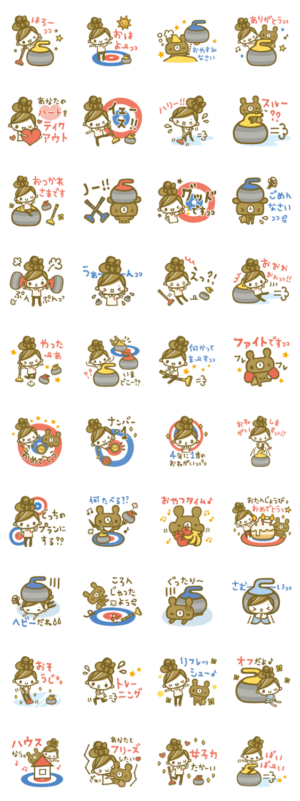 イラストレーター岩崎あゆみ【Sweetaholic】スタンプ第5弾♪ちこちゃんがカーリングに挑戦!元五輪日本代表松沢美香さん監修*カーリングはもちろん日常にも使えちゃうよ♪