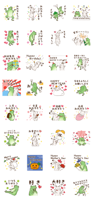 人気の鳥獣戯画をモチーフにした、和風スタンプです。お誕生日・お正月・結婚・出産・入学・卒業・クリスマス・ハロウイン… etc。さまざまなお祝い行事に使えます。三浦さくりーぬ より発売
